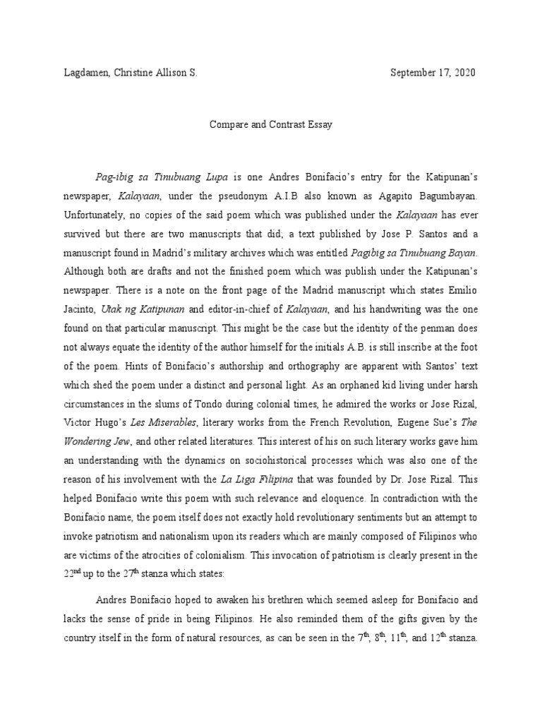 Compare And Contrast Essay Pdf Philippines Poetry