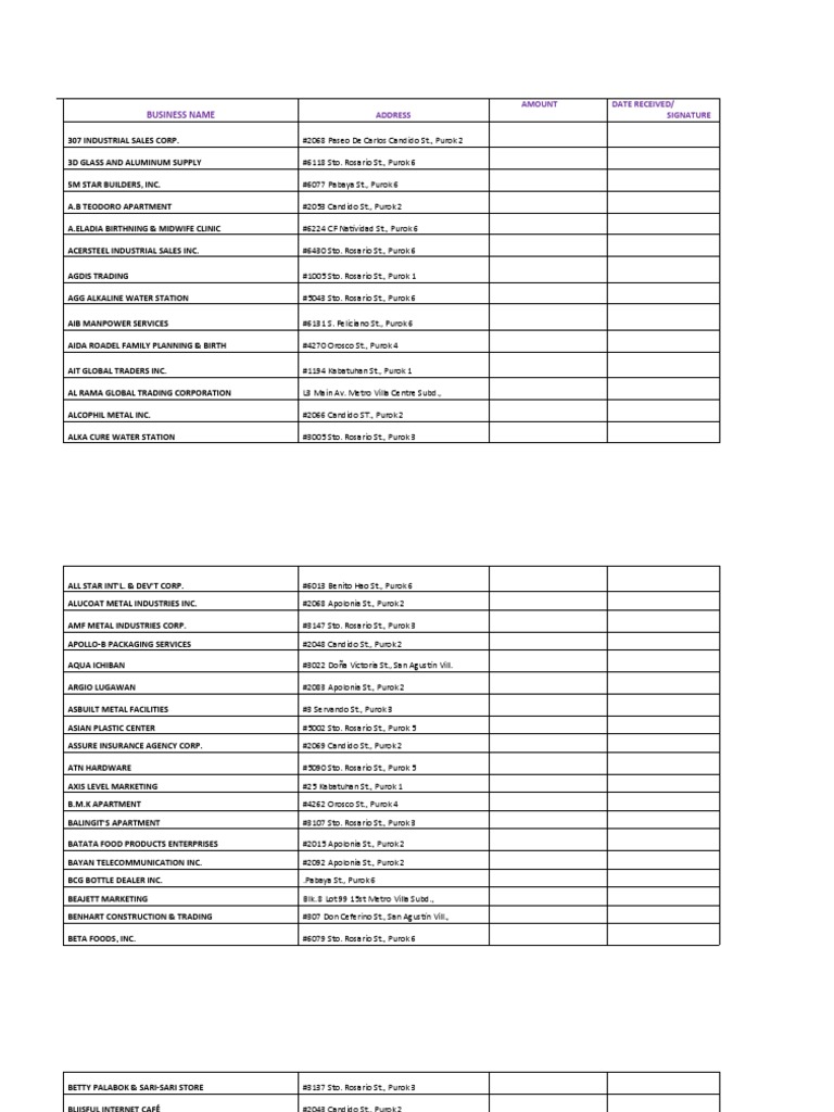 Business Name Address Amount Date Received Signature Pdf Materials Chemical Substances