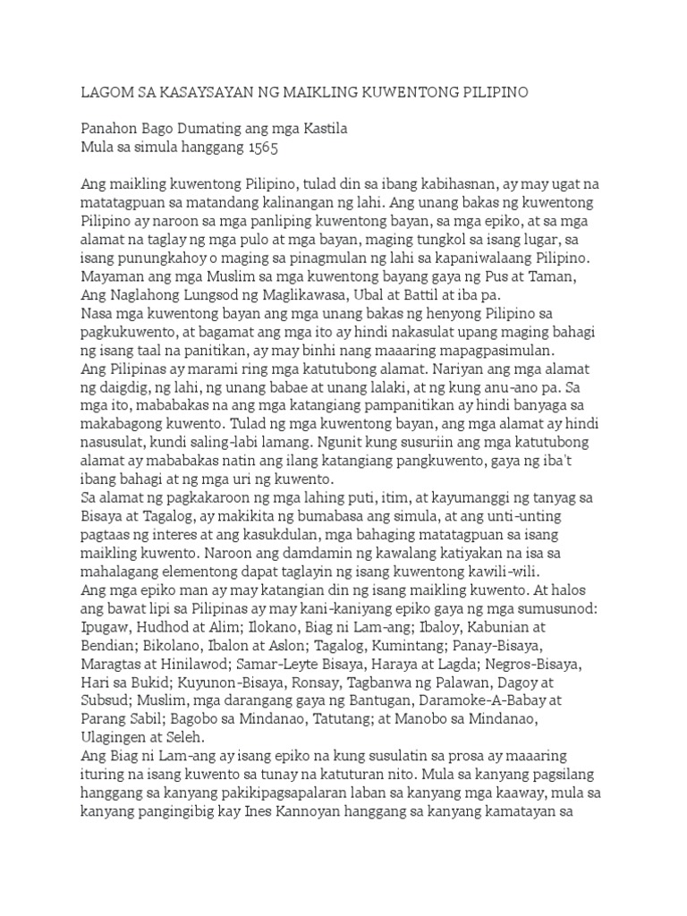 Lagom Sa Kasaysayan Ng Maikling Kuwentong Pilipino Pdf
