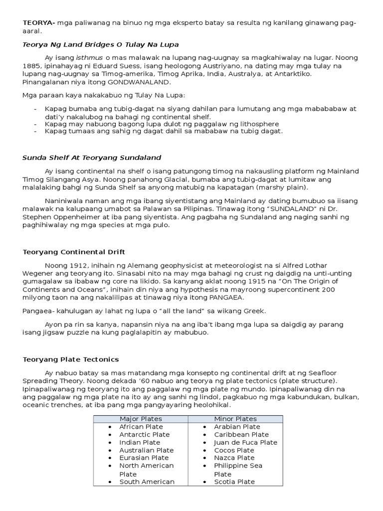 Maaaring buudin ang alternatibong teoryang ito gaya ng sumusunod. Sunda Shelf at Teoryang Sundaland Noong panahong Glacial bumaba ang tubig- dagat at lumitaw ang. Tektonic plate ang tawag sa mga makapal at malalaking tipak ng lupa sa Crust ng mundo.